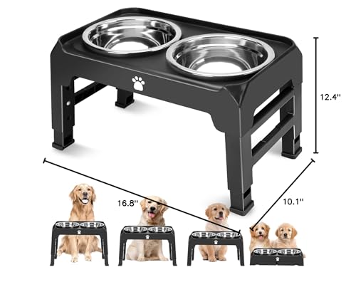 Specification: AIRMX Elevated Dog Bowls Heights Adjustable Raised Dog Bowl Stand with 2 Stainless Steel Dog Food Bowls Non-Slip Foldable Dog Feeder for Medium Large Dogs, Adjust to 12.36″, 10.75″, 9.2″,3.7″