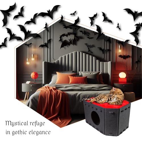 Ultimate Security: The encircling design provides a protected hideaway, ideal for stressed cats. Constructed from durable felt, it offers insulation, warmth, and soundproofing, making it a gothic sanctuary. Perfect for creating a mysterious atmosphere with goth cat accessories.